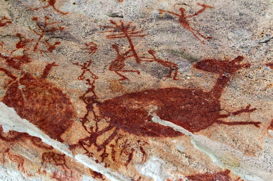 Pintura rupestre na toca do boqueirão da pedra furada, no parque nacional Serra da Capivara, no Piauí. (Foto: reprodução)